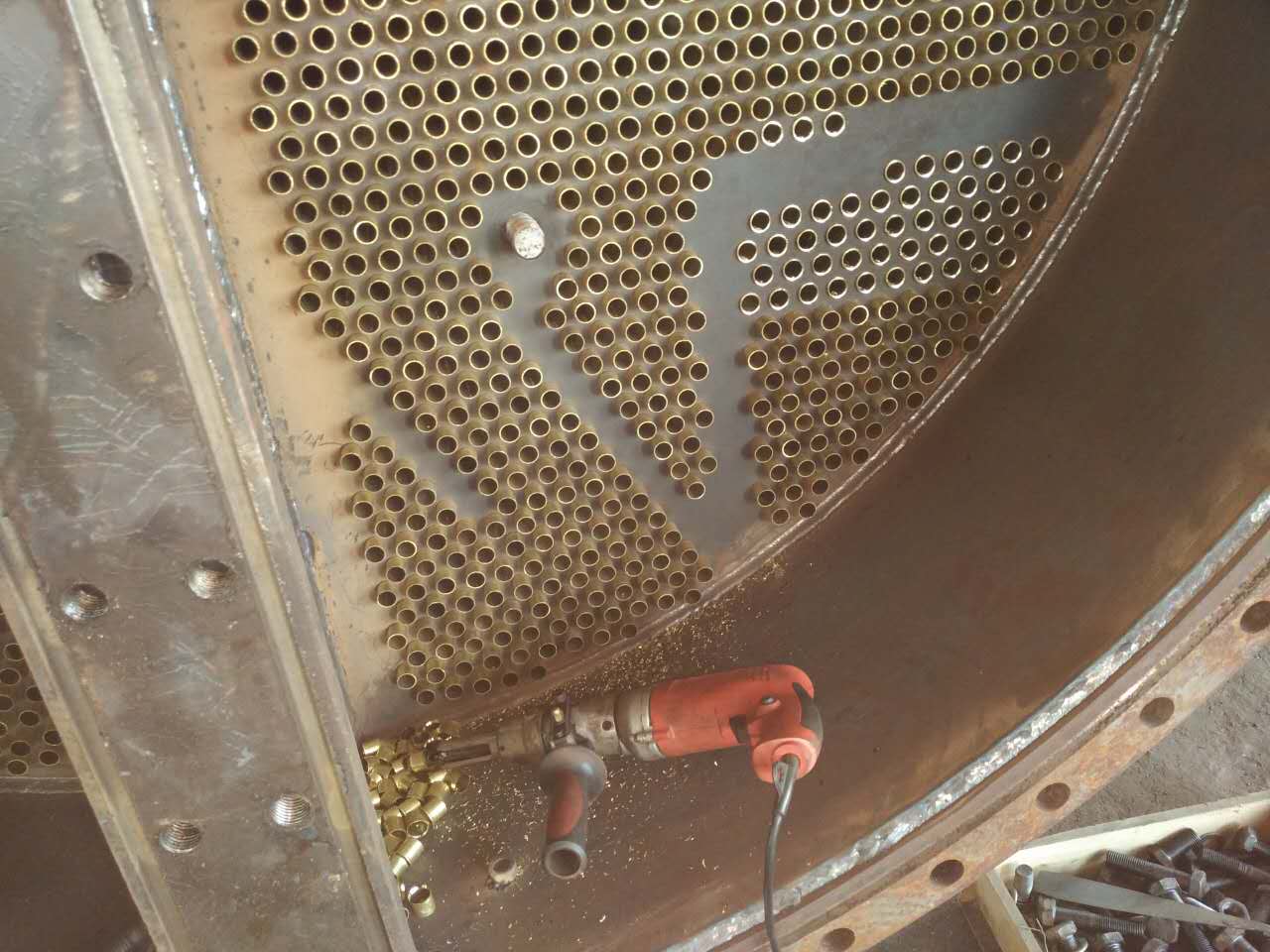 生產(chǎn)凝汽器N-500的現(xiàn)場車間制造安裝,,過程!今后連云港靈動會將所有...